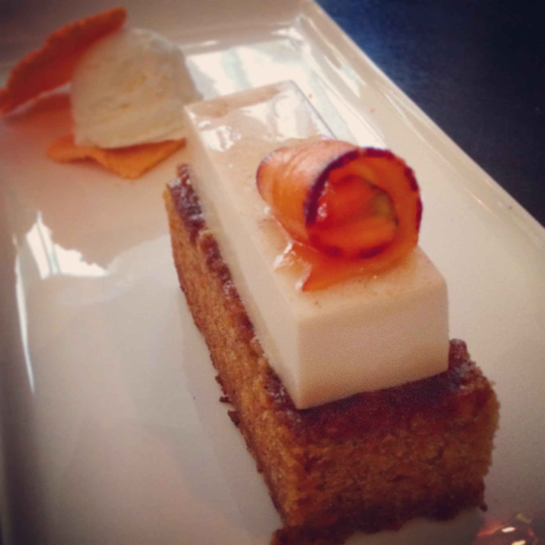 Mon coup de cœur va au plat de Gnudi de ricotta Buffalone des élevages de Saint-Charles-sur-Richelieu qui était servi avec vert de bette, laitue kale, compoté de tomates d’antan et livèche. Et si vous voulez un conseil, gardez vous de la place pour le dessert!! Ils étaient tous miam… Moi qui trouve habituellement le gâteau aux carottes ben plate, j’ai adoré celui du chef Courcoul, tsé!
