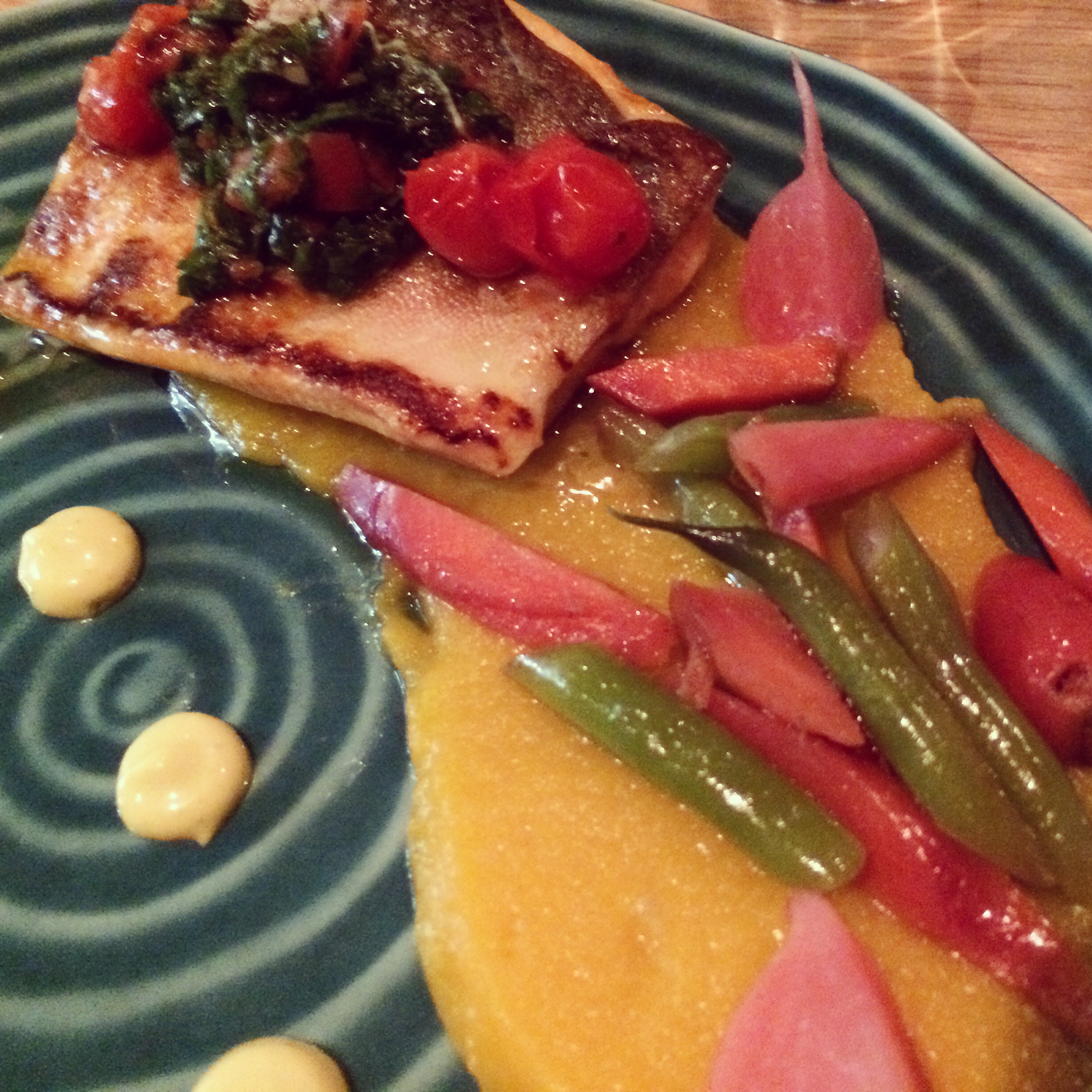 Mon choix s’est arrêté sur le Ceviche de bar rayé, l’omble chevalier poêlé, ainsi que le pouding au quinoa.