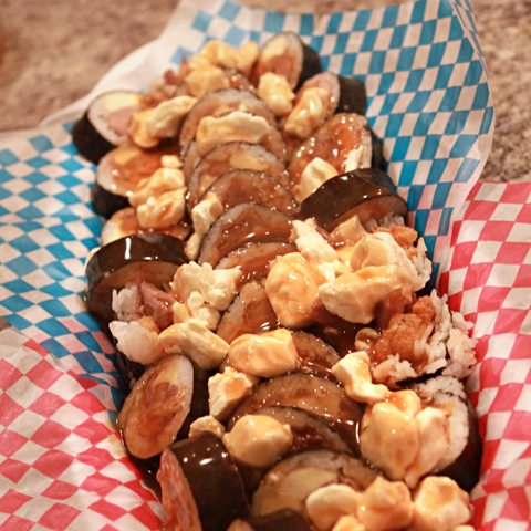 Pour ma part, j’avais demandé le fameux maki poutine avec du canard confit, c’était un réel délice et vraiment très original. Et pour le dessert, comme je suis une fan finie de red velvet, le chef Éric-Yan m’a concocté une variété de maki faite à partir de cupcakes red velvet! Miammmm! Et j’ai même eu droit à des chandelles sur mes sushis dessert ;-)