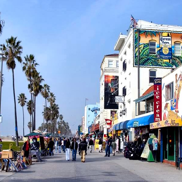 Développé dans le début du 20e siècle, Venice Beach est modélisé d’après sa ville éponyme en Italie. En 1906, des visiteurs pouvaient utiliser des gondoles sur les canaux créés dans la ville. Aujourd’hui, il y a définitivement une « vibe » très particulière à Venice Beach; une atmosphère cool et un peu hippie sur les bords. Le quartier bohème est à la fois bizarre, intriguant, loufoque et totalement Los Angeles. On adore ou on déteste, mais Venice Beach ne laisse personne indifférent.