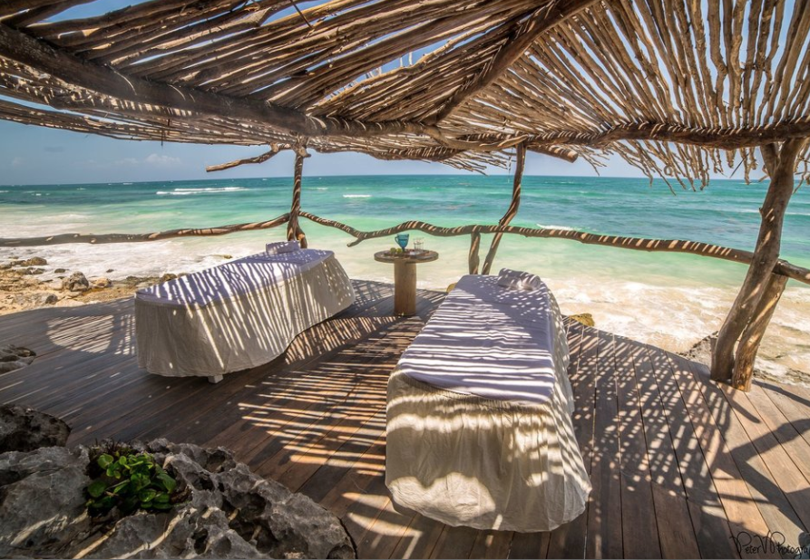 Situé au bord de la magnifique mer turquoise de Tulum, le spa Maya propose des massages, des enveloppements corporels, des soins et des cours de yoga, ainsi que des sessions de temazcal (genre de sauna traditionnel mexicain) ou les bains de vapeur que les indigènes mexicains croyaient avoir des pouvoirs curatifs et purificateurs. Ce qui fait toute la différence du Spa Maya est son décor et sa construction durable en parfaite harmonie avec la nature! Les soins sont donnés dans un décor rustique dépaysant et avec vue sur la plage de Tulum.