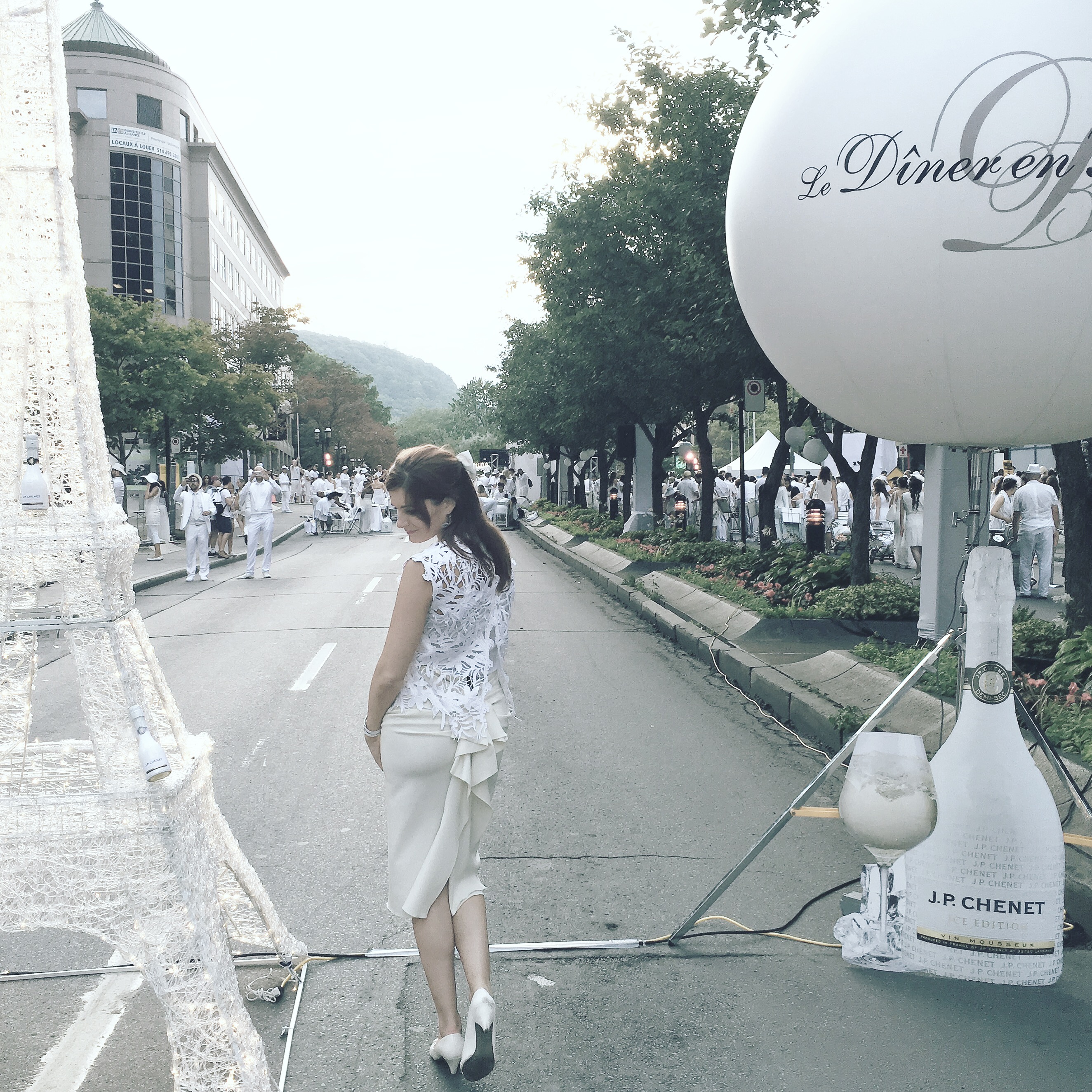 Bref, on a vraiment apprécié notre toute première expérience à Dîner en Blanc, c’est vraiment impressionnant de voir toutes ces personnes vêtues de blanc et les tables qui sont toutes alignées. Le moment auquel tout le monde allume des feux de bengale est vraiment magique! Aussi, chose importante à savoir: on demande aux participants de ne pas quitter le site avant 23h. Vous pouvez donc largement profité de l’ambiance festive, des photo booth et de la rue transformée en méga piste de danse! On a d’ailleurs bien apprécié le DJ et le violoniste, plein de talent!