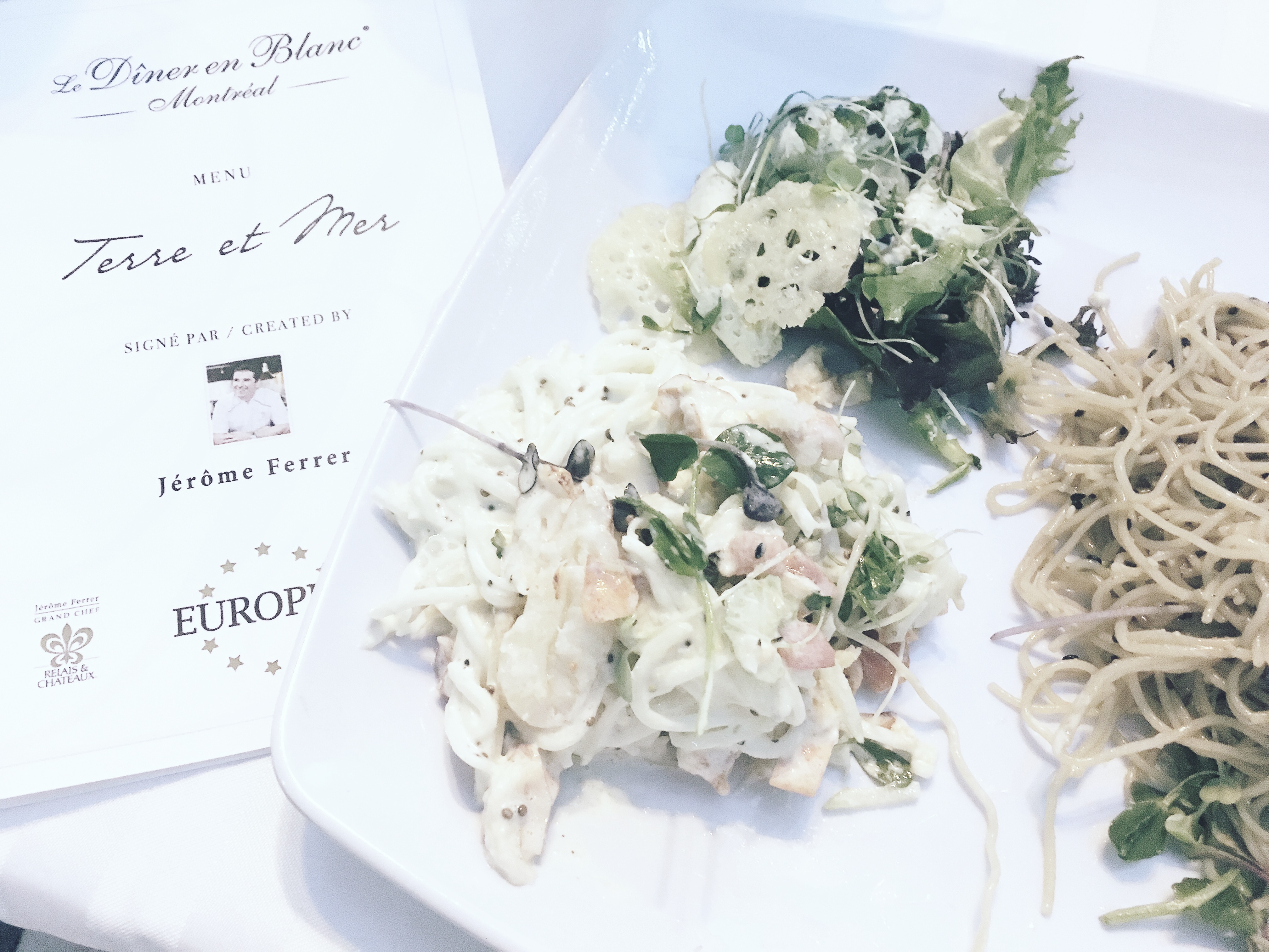 Qui dit Dîner en Blanc, dit soirée gastronomique! Lors de cette soirée, les invités ont le choix d’apporter leur repas maison ou bien de se procurer l’un des paniers-repas préparés soigneusement par l’un des chefs invités. Cette année, nous avons eu la chance de collaborer avec le grand chef Jérôme Ferrer du Groupe Europea afin de savourer son menu dégustation Terre & Mer durant la soirée.