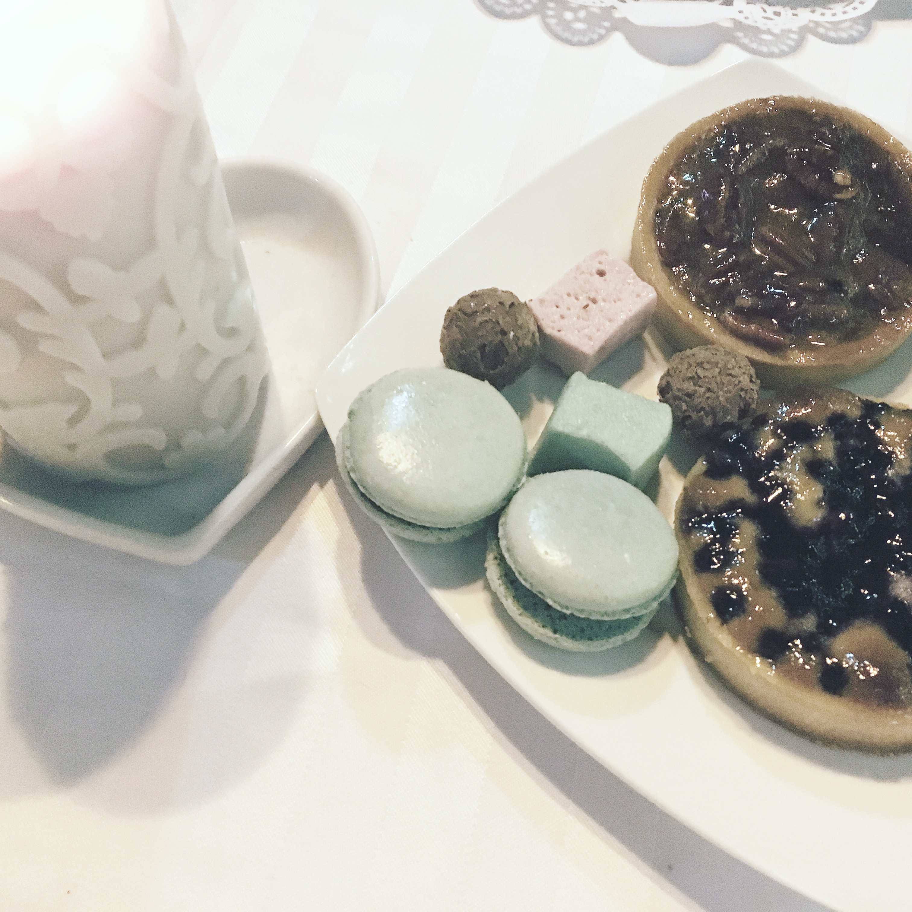 • Coffret de mignardises (macarons chocolat et guimauves)