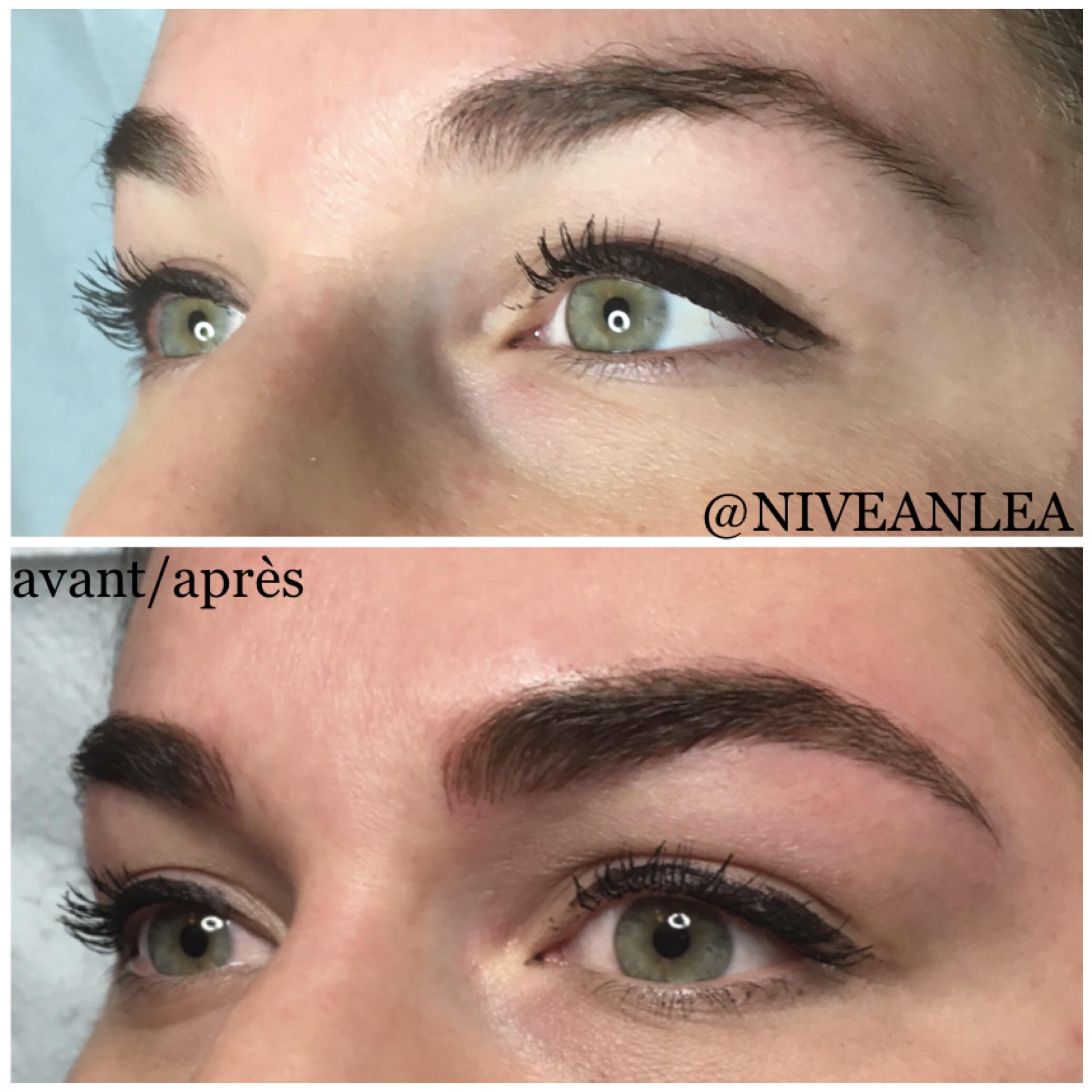 Il s’agit de maquillage semi-permanent (durée d’environ 1 an et plus, dépendamment du type de peau de la personne). Les poils sont tracés grâce à plusieurs petites aiguilles qui sont réunis sur une même ligne, formant une lame. Le résultat est très naturel, car cela imite parfaitement les poils.