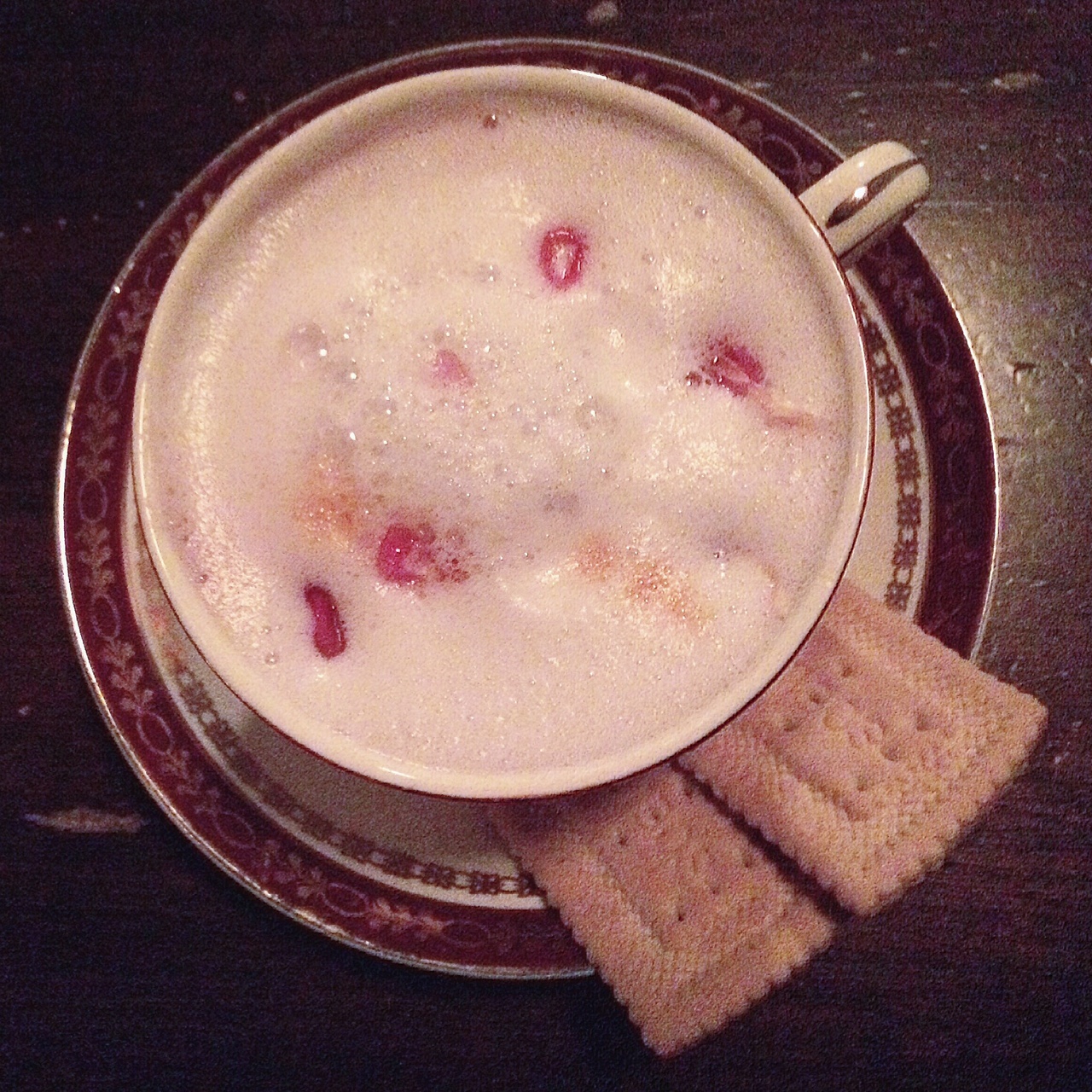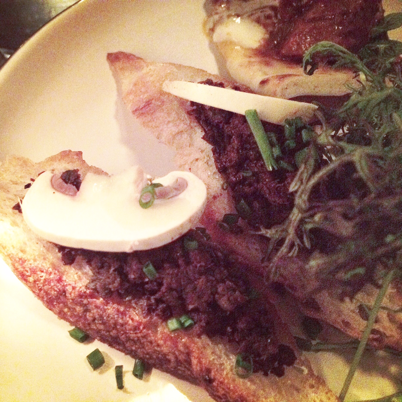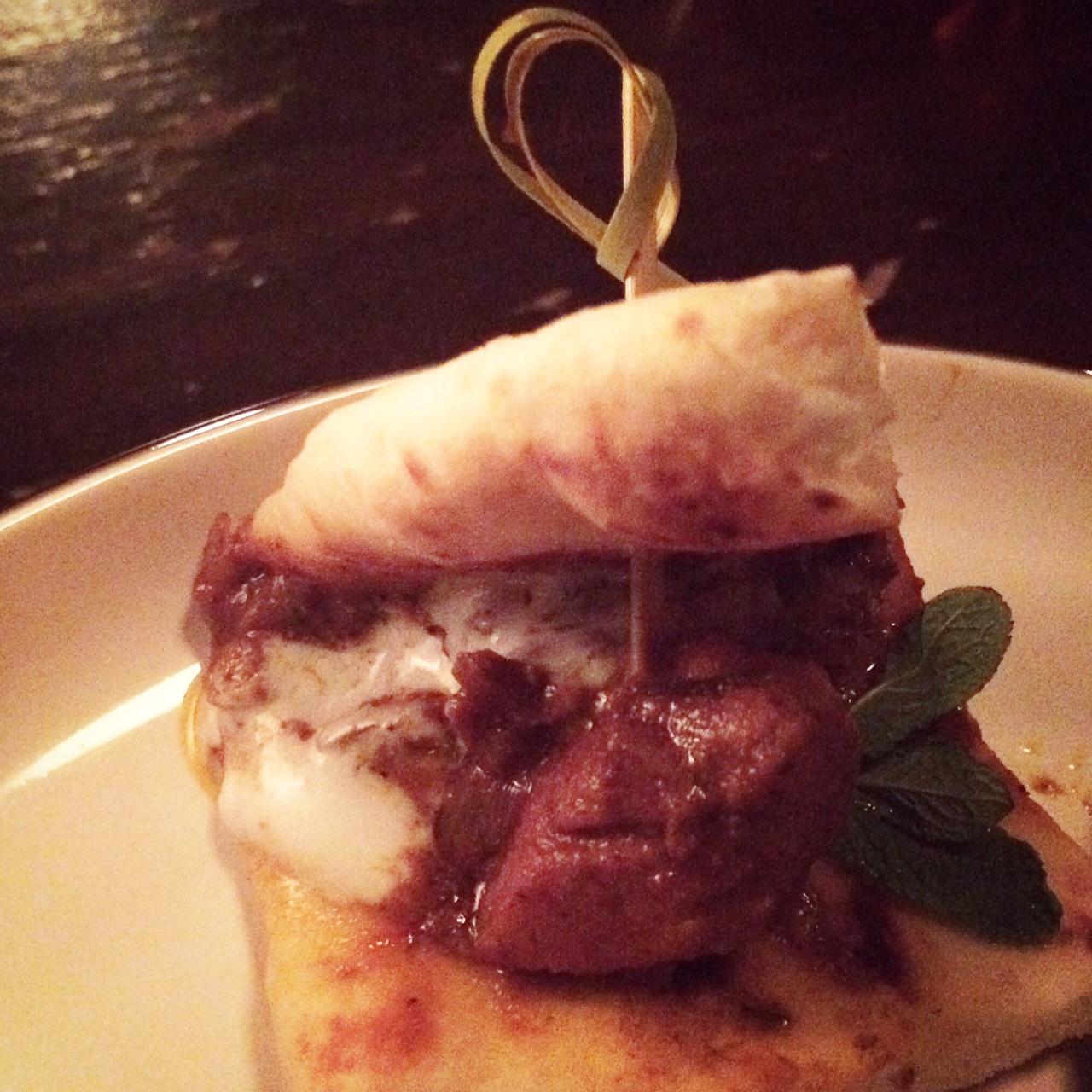 Le Goji Kiss (gin, liqueur de sureau, jus de goji, thé Kusmi chai, citron frais, jus de canneberge, blanc d’oeuf) se boit littéralement comme du petit jus; un petit goût acidulé et pas trop sucré! Le green velvet (gin, absinthe, thé Kusmi gyuokuro, concombre, lime frais et mousse de céleri et coriandre) est frais en bouche et végétal, parfait pour ceux qui aiment l’amertume d’un gin-tonic-concombre. Le teatime (Cachaça Leblond, sirop de framboise, thé Kusmi indien Assam et amer à la rhubarbe); girly à souhait, servit dans une belle petite tasse vintage et accompagné de biscuits est un cocktail très doux à son image. Le Daisy Twist (rhum, porto, drysack, citron frais, sirop Traktir, gelée de porto et thé), servit avec une petite cuillère de gelée de porto à mélangé au drink avant de consommer est super in-thé-ressant aussi ;) Le regent punch (cognac, rhum, absinthe, sirop d’ananas, citron frais et prosecco), un mélange un peu plus corsé avec une touche acide est servit avec un shooter de prosecco à verser doucement pour le plaisir de quelques bulles. Finalement, le Safran Sour (bourbon, purée de fruit de la passion, sirop de safran, thé à la camomille, blanc d’oeuf) offre une finale amère et le goût du safran, très original pour un cocktail!