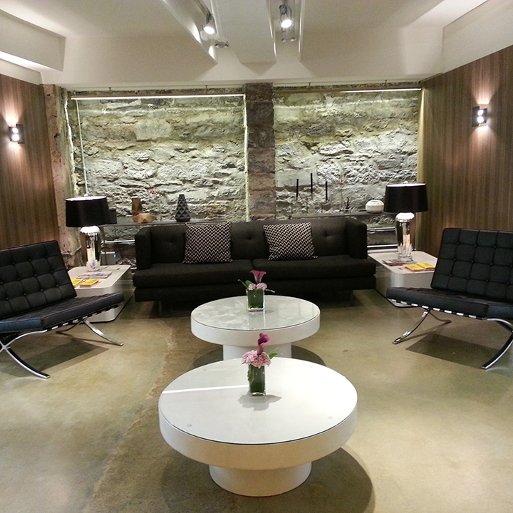 L’endroit est sublime et porte très bien son nom! Situé au 360 Notre-Dame Ouest dans le sous-sol d’un immeuble historique du tournant du XXe siècle, le salon a ouvert officiellement ses portes en mai dernier. L’endroit reflète le luxe et se démarque par un décor bien choisi, une atmosphère d’intimité, un système d’éclairage extrêmement flatteur, parfois tamisé parfois plus franc selon les espaces de travail. Les murs de pierres naturelles ancestrales donnent un style rustique qui s’agence à merveille au décor sophistiqué. La salle d’attente nous donne l’impression d’être dans lounge avec son bar et ses divans en cuir très propice à la détente.
