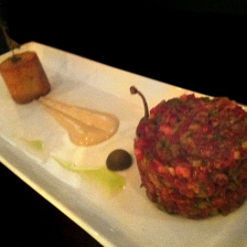 La bâtisse en tant que telle est impressionnante de l’extérieur! Par contre, il y a beaucoup moins de cachet à l’intérieur: murs blancs, peu d’espace entre les table et manque d’intimité. Le point fort du décor intérieur: la section de service vitrée (voir les assiettes descendre par les petits ascenseurs m’amusait bien) et l’espace cellier, lui aussi vitré avec un éclairage qui met les bouteilles en valeur. Côté bouffe, la soupe de potiron rôtie était vraiment délicieuse… et étonnante! Le tartare: classique, mais sans faille. J’ai été un peu déçue par le plat de homard. Premièrement, il y avait peu de homard dans l’assiette (mais ça, on m’en avait avertie), mais le morceaux ne semblaient pas apprêtés de façon particulière et n’avaient pas une bonne texture… L’accompagnement de pâtes spätzle quand à lui était savoureux et rassasiant. La joue de boeuf, elle avait une texture parfaite et fondante avec un accompagnement riche. Le dessert était présenté de façon original, mais simple au goût. Bref, au final: beaucoup d’ingrédients pour une très belle soirée.