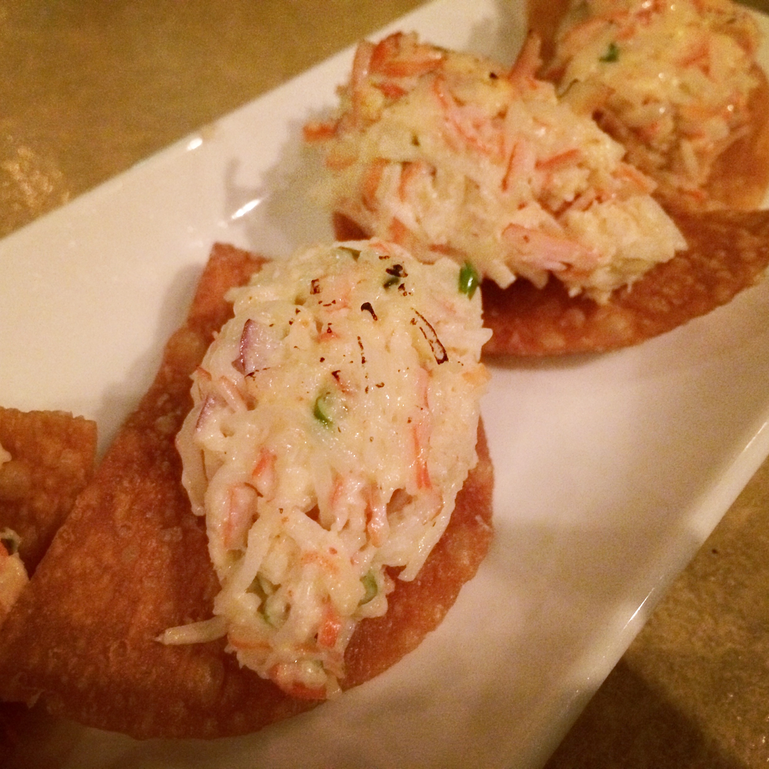– Bouchées de crabe :(Crabe d’Alaska, goberge, fromage cheddar,oignon rouge et mayonaise épicé servie sur croustille maison)