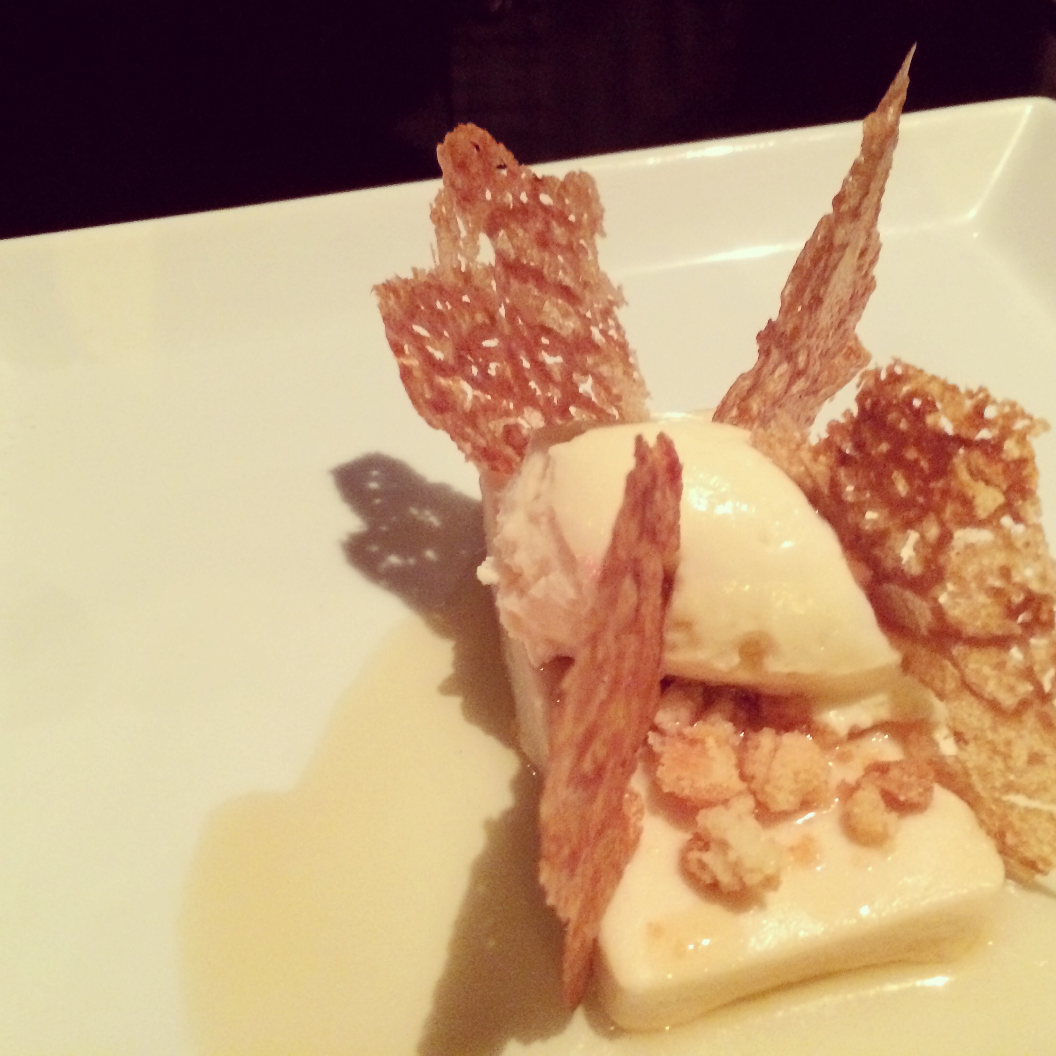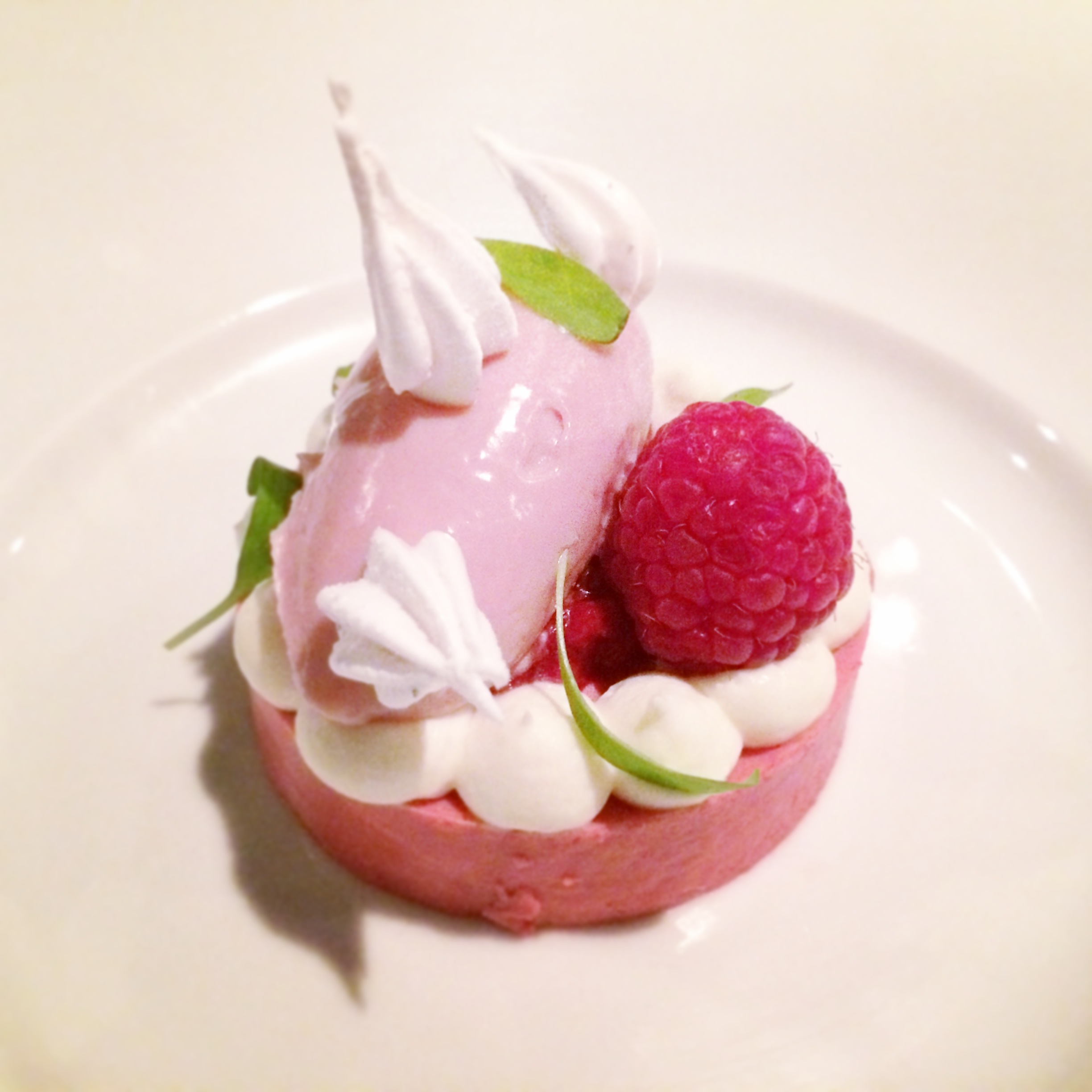 Le dessert à la framboise était lui aussi particulièrement réussi. On y retrouvait plusieurs textures: mousse, guimauve et crème, ainsi qu’un mélange de goûts sucrés, acidulés et parfumés grâce au romarin. Le dessert à l’érable, bien que très joli avec ses dentelles d’érable était plus fade en comparaison.