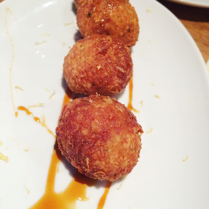 La 2e fois que j’y suis allée, c’était avec un couple d’ami, mais pas trop du genre à partager tout plein de plats ensemble. Bref, un peu problématique lorsque le concept même de Tapas 24 est de partager des petits plats de styles Tapas de façon conviviale pour accéder au maximum de saveurs et d’expérience. Cela fait aussi partie de l’expérience du restaurant! De plus l’un d’eux ne mangeait pas de fruits de mer, alors que, vous l’aurez compris, cela limite grandement le choix lorsqu’on parle de plats d’inspiration espagnole. Nous étions également situés au 2e étage lors de cette soirée qui semblait moins dégagé l’ambiance et la vue sur le superbe décor du restaurant. Finalement, la soirée fût bien ordinaire, me laissant perplexe par rapport à mon souvenir précédent.