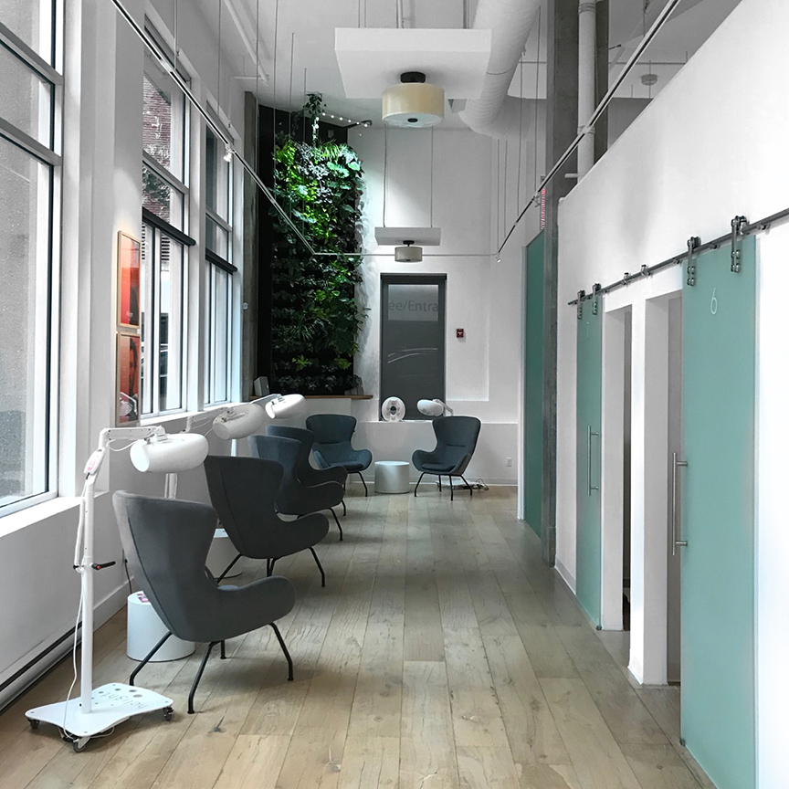 Le Centre Helight est situé en plein centre-ville de Montréal. Dès qu’on y met les pieds, on remarque d’abord le design moderne et épuré et l’ambiance zen et apaisante.